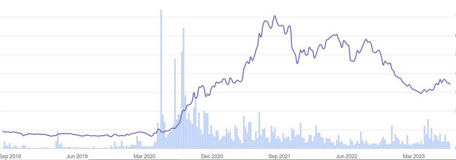 This realization leads to a fall in the stock price by almost 60% over a short period.